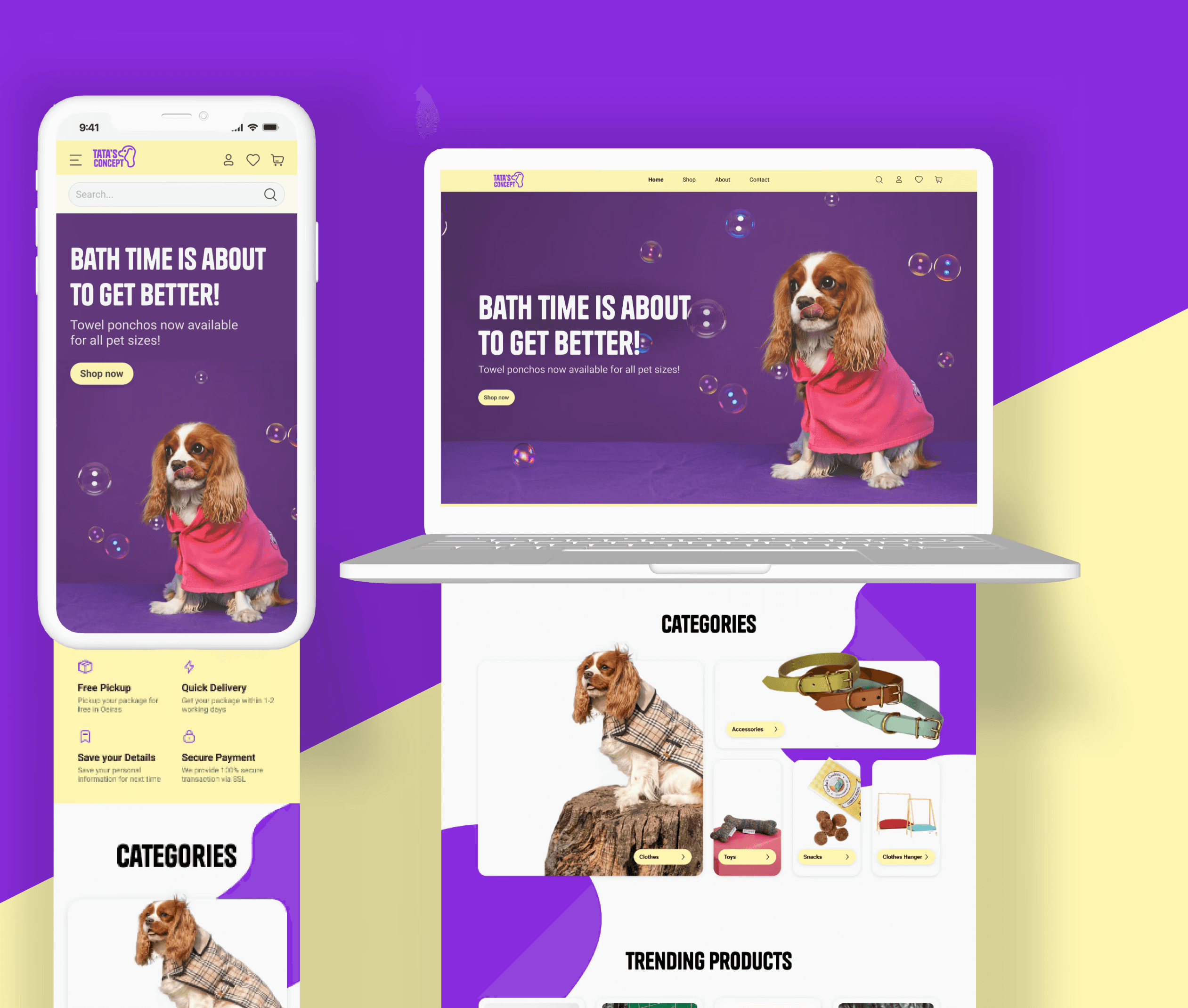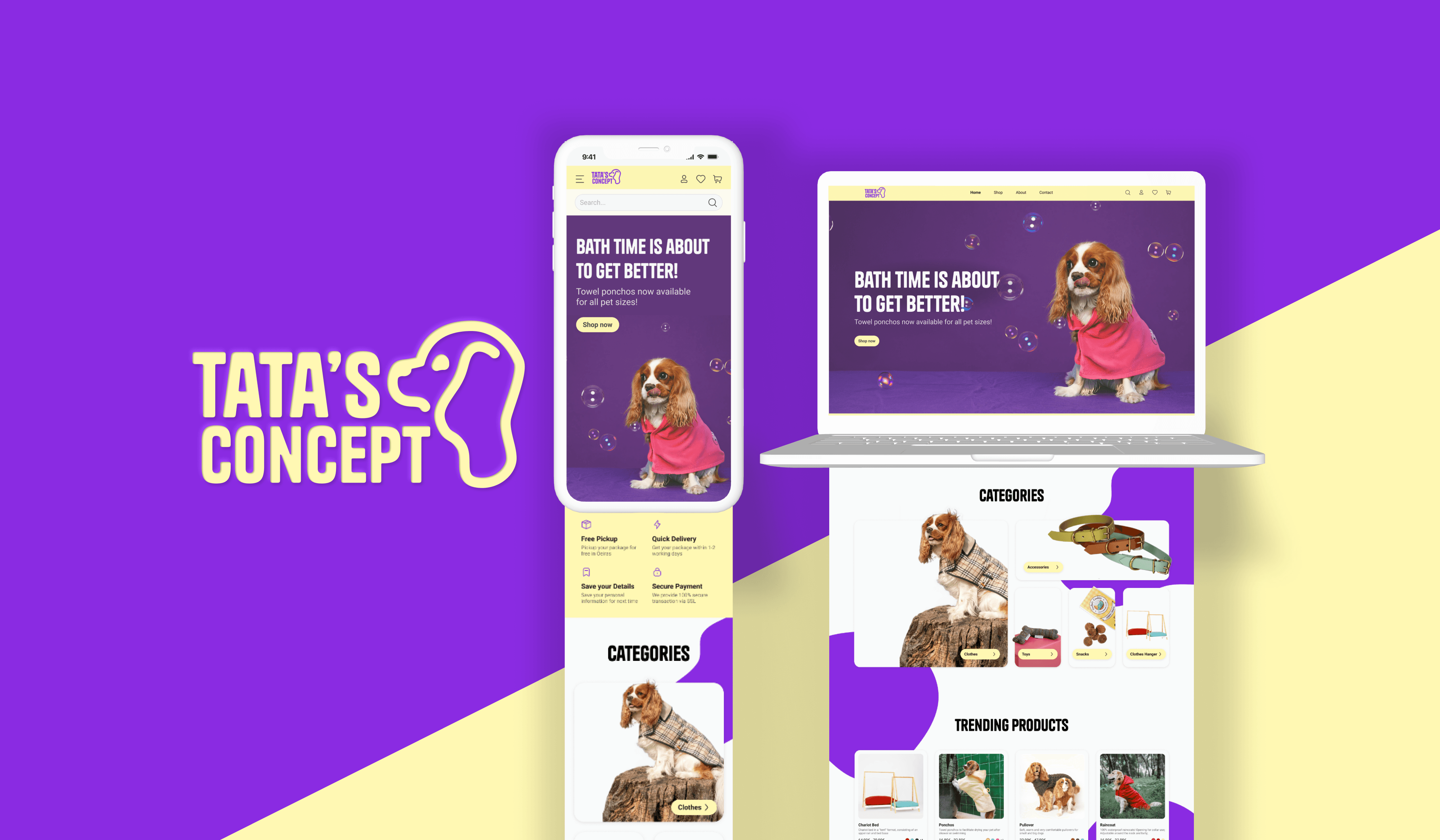 A comprehensive redesign of the cherished Tata's Concept pet shop's brand identity and website.