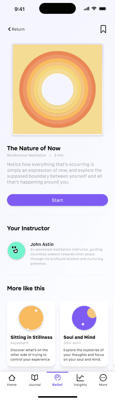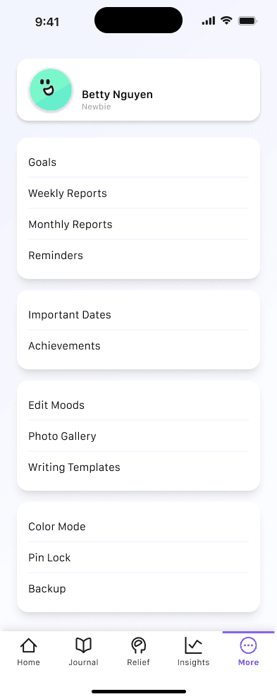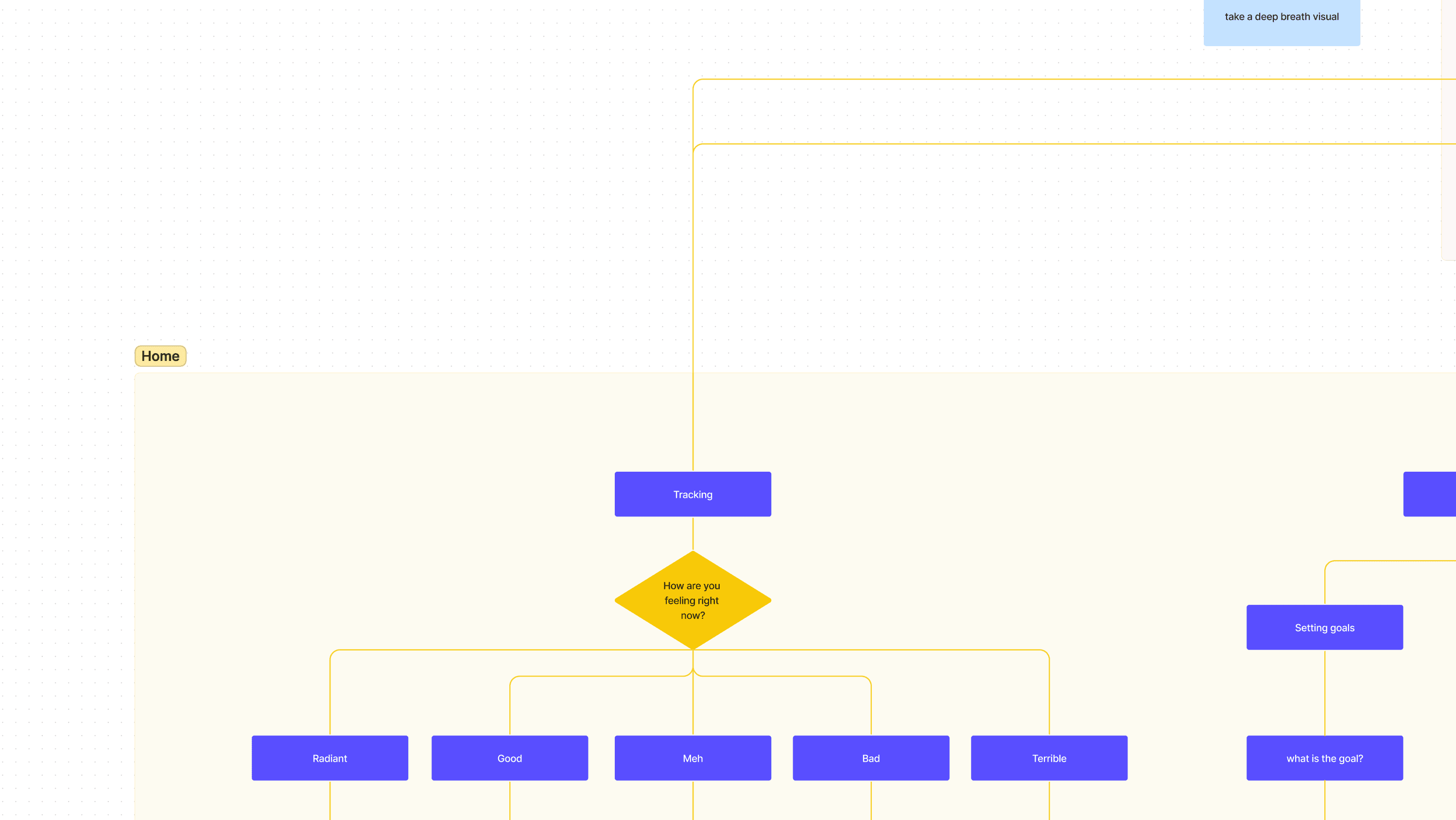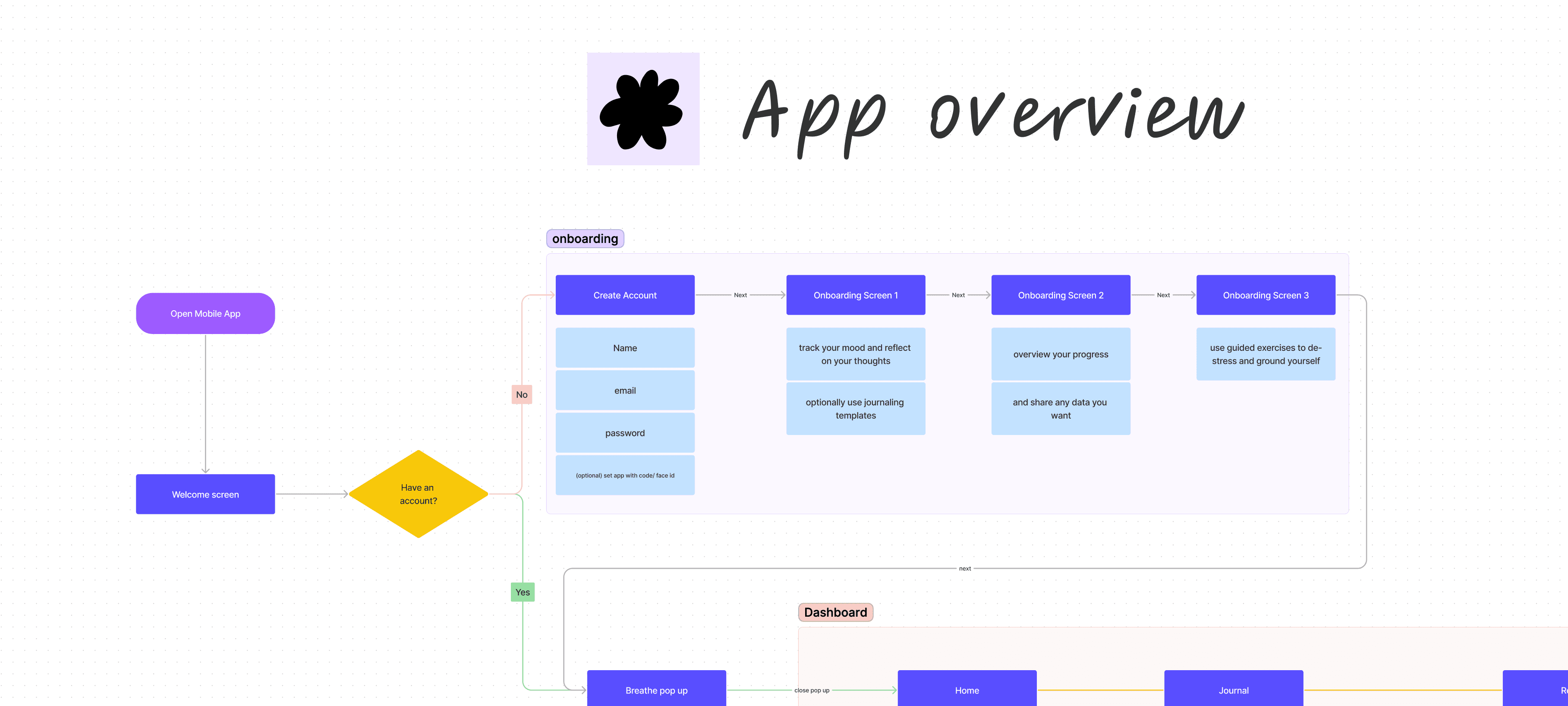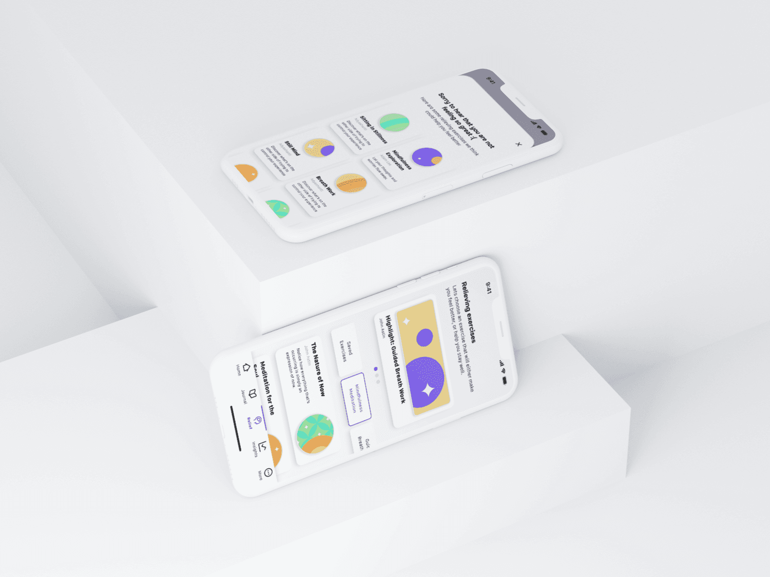 The ideating phase consisted of brainstorming, exploration and ideation, which allowed me to shape the information architecture, develop wireframes, and work on some visual explorations for this mood tracking app.