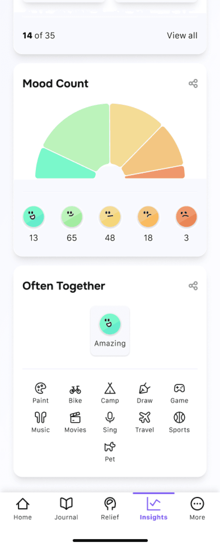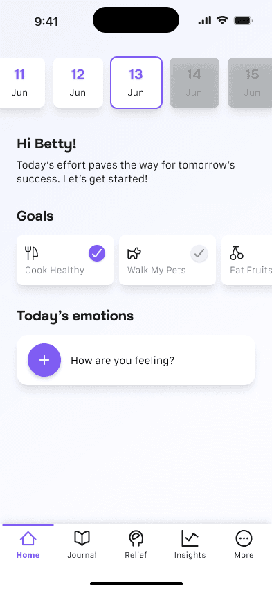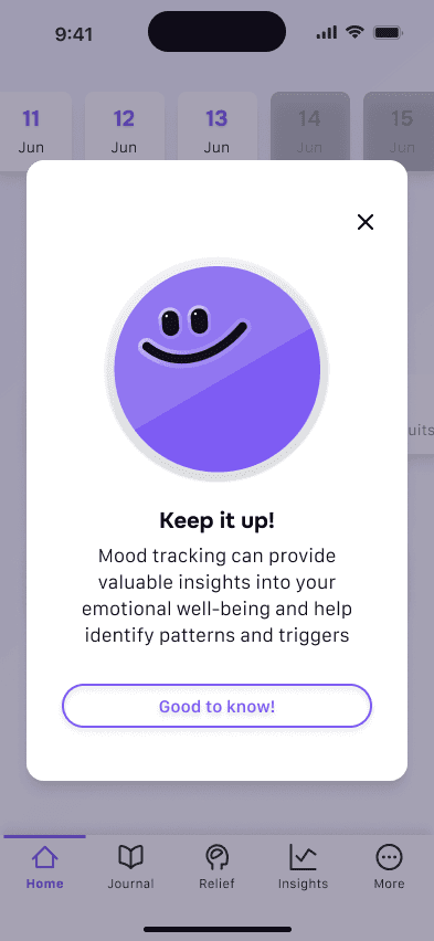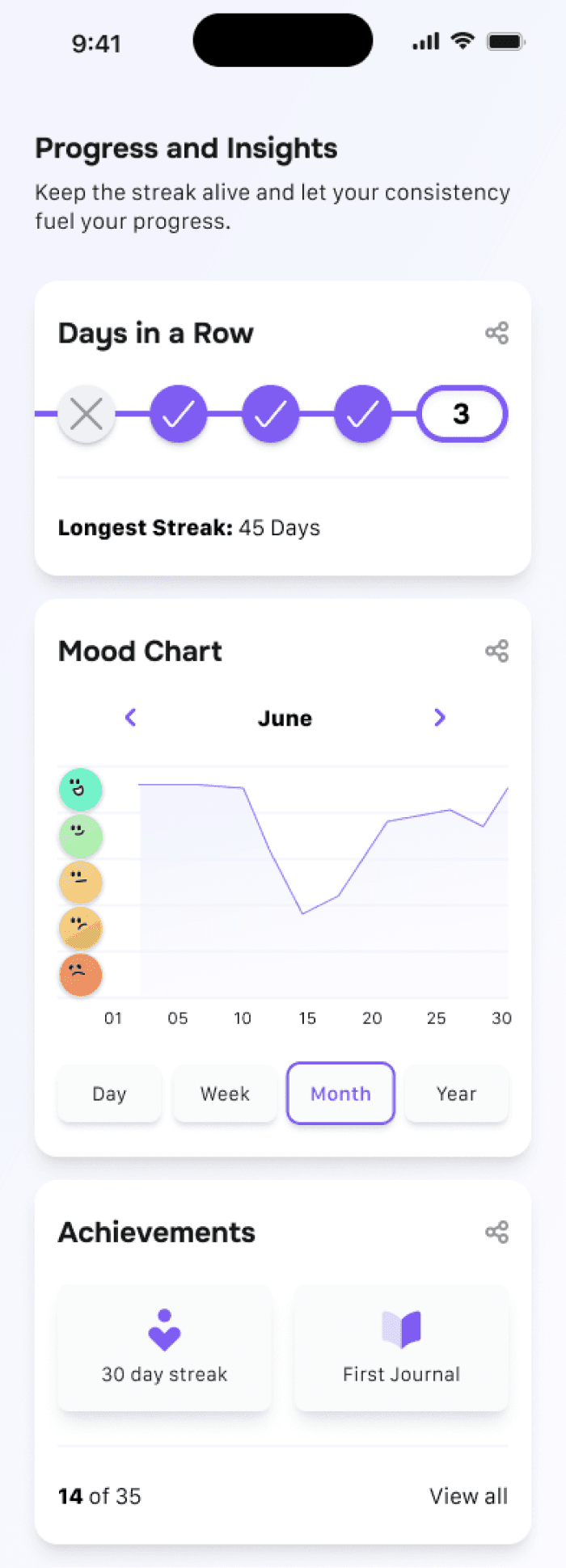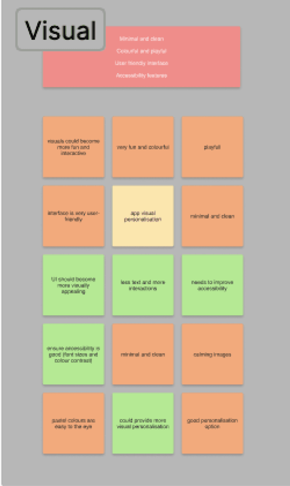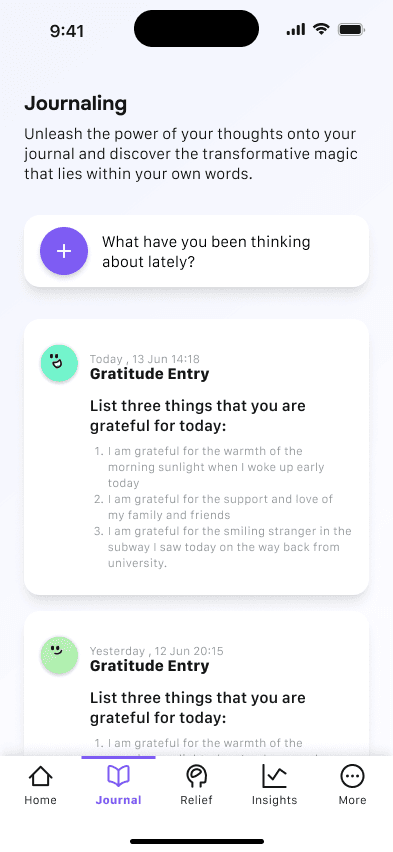 The empathising phase of the design thinking process involved some research that was conducted to gain a deep understanding of the mental health application landscape. Some market research was done to explore the current market trends, user preferences, and emerging technologies in the realm of mood tracking. This analysis showed a tendency/trend for features that allow monitoring of how moods vary and help the user to better understand the stressors and triggers that can cause the negative emotions they experience. User retention increased as interactive features, fun customisation tools, and useful alerts increased too.