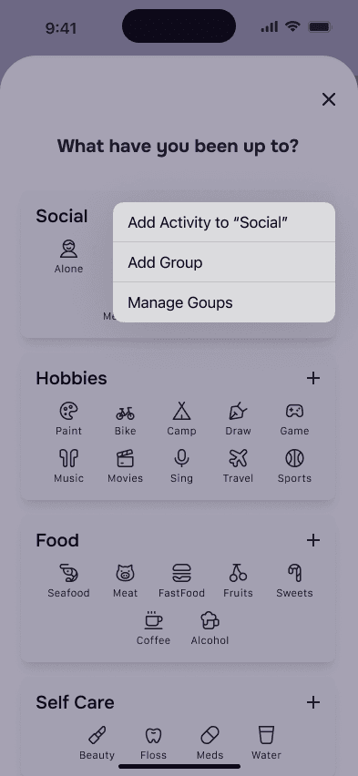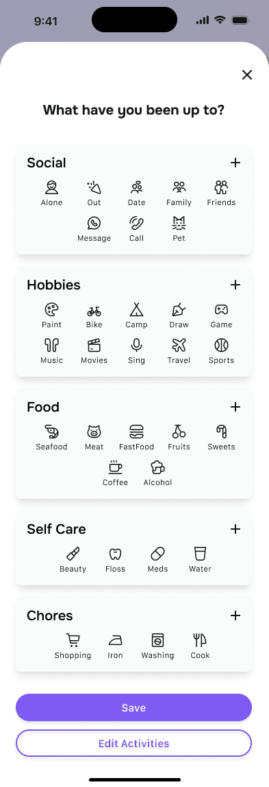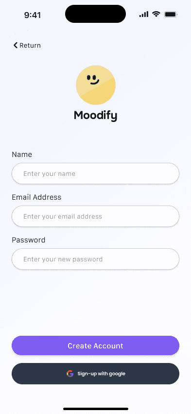To ensure consistency and efficiency throughout this design process, I established a small design system which consisted of a local style guide that encompasses a set of guidelines, standards, and components for the Moodify app.